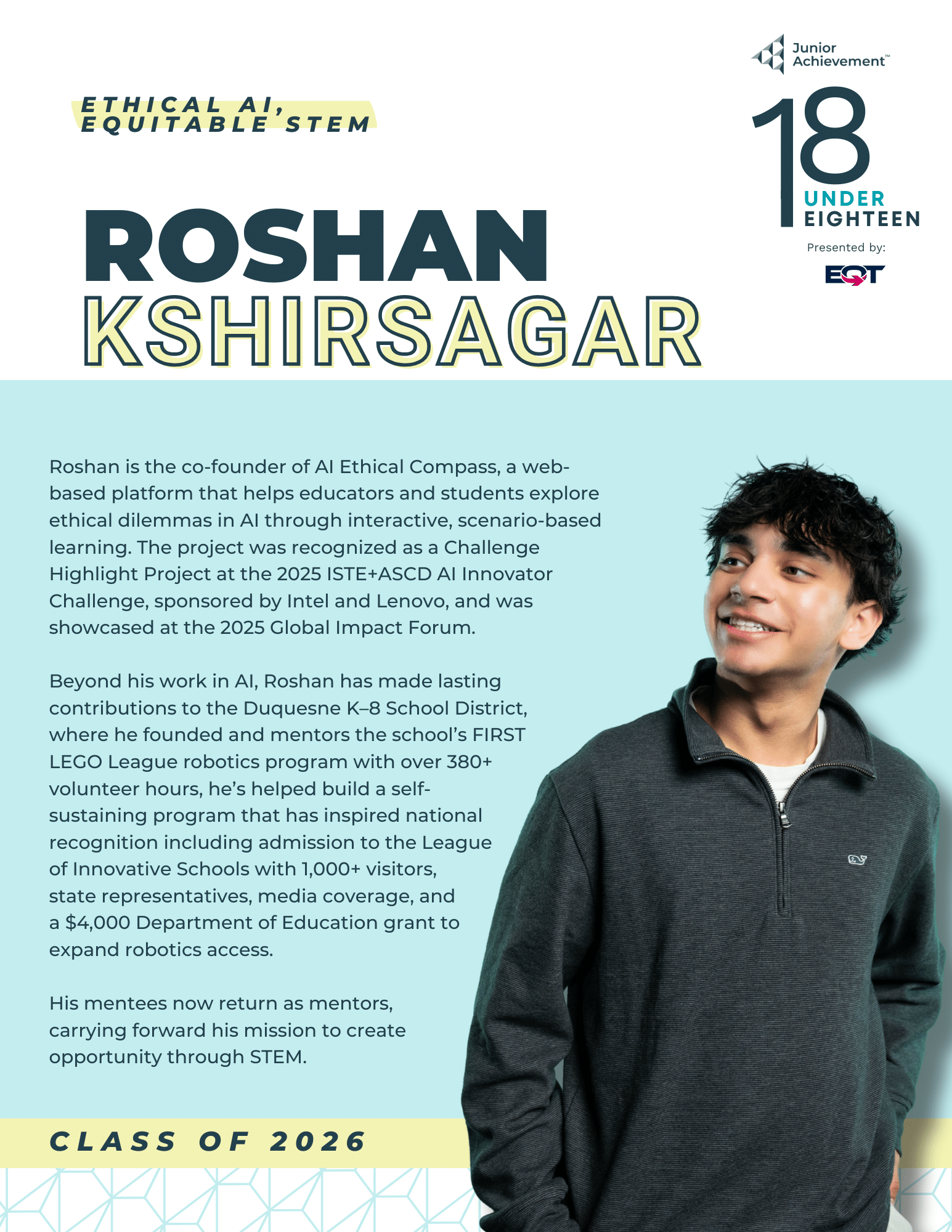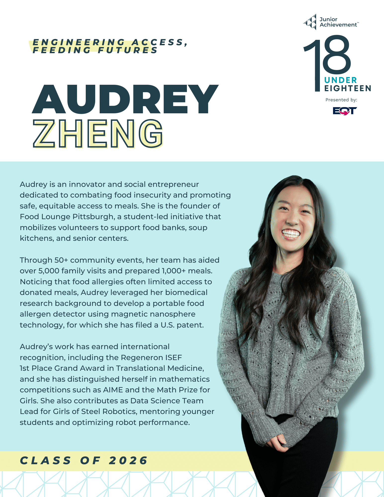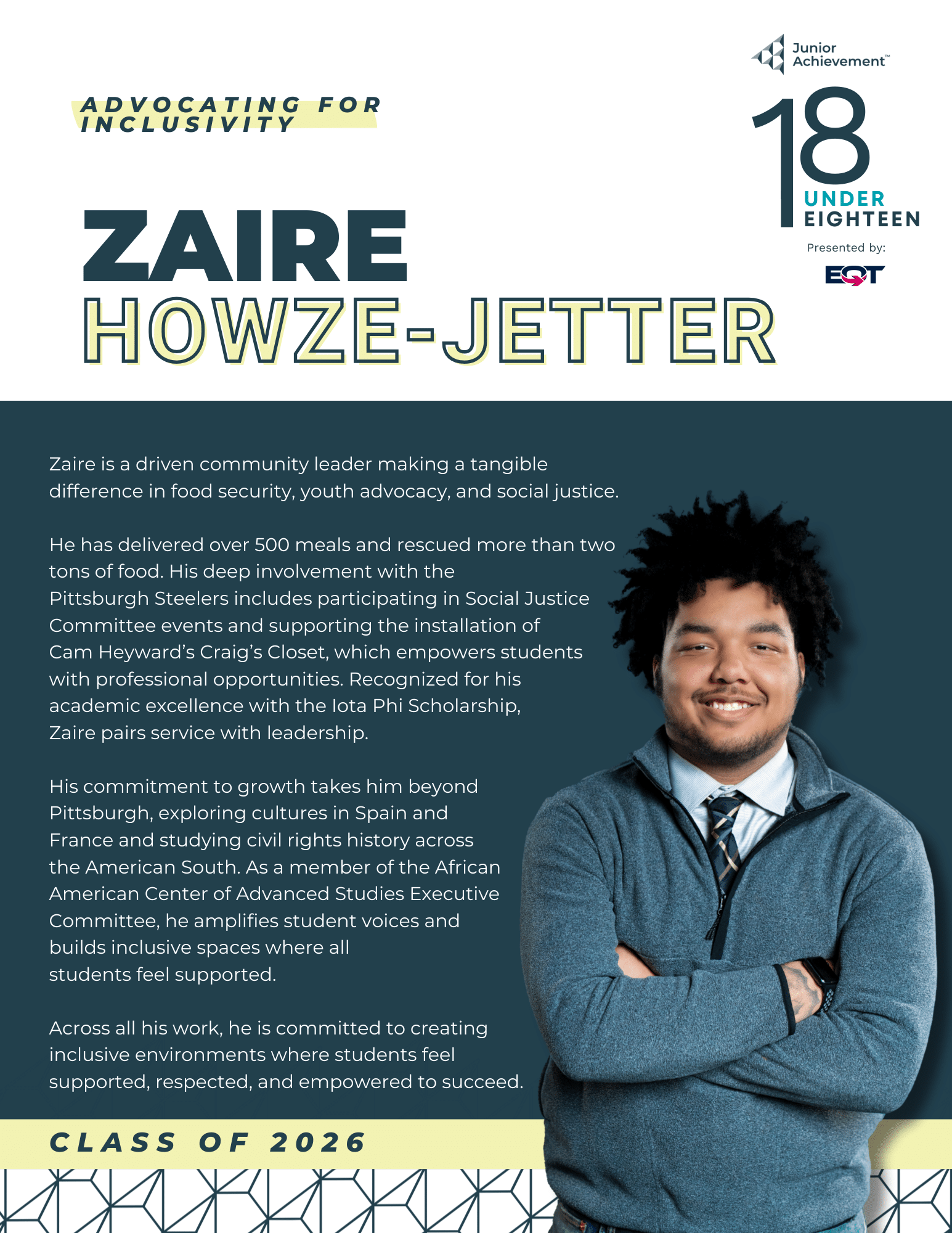 For half a decade, JA’s 18 Under Eighteen, Presented by the EQT Foundation, has celebrated the boldest young leaders across our region – students making real impact in their schools, neighborhoods, and communities.