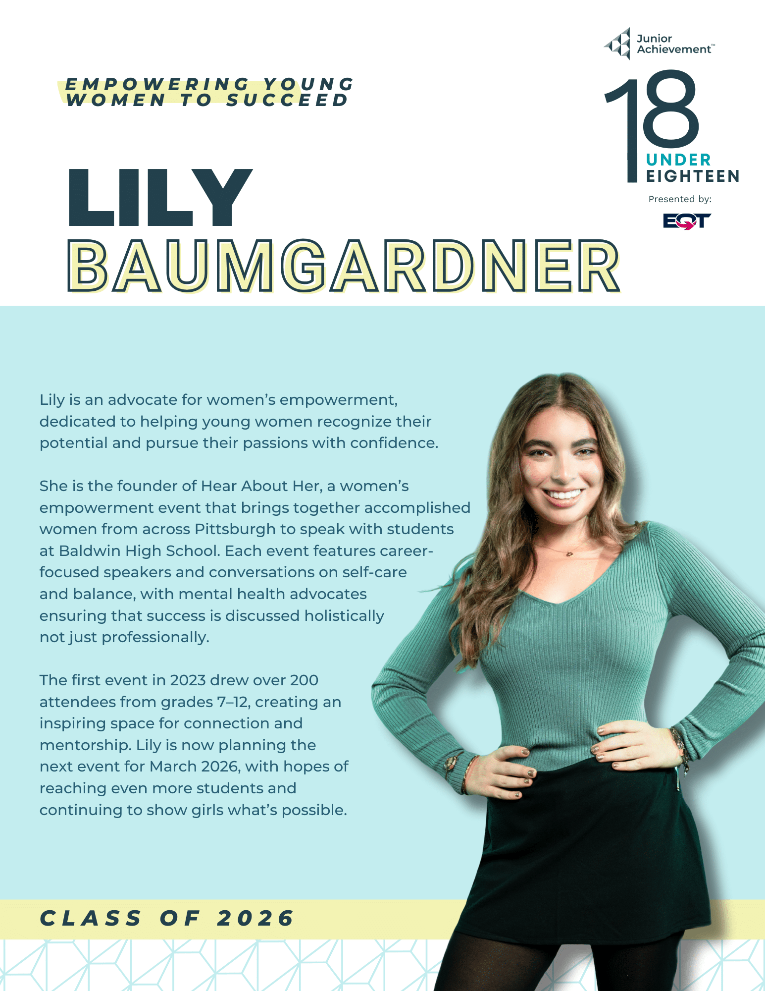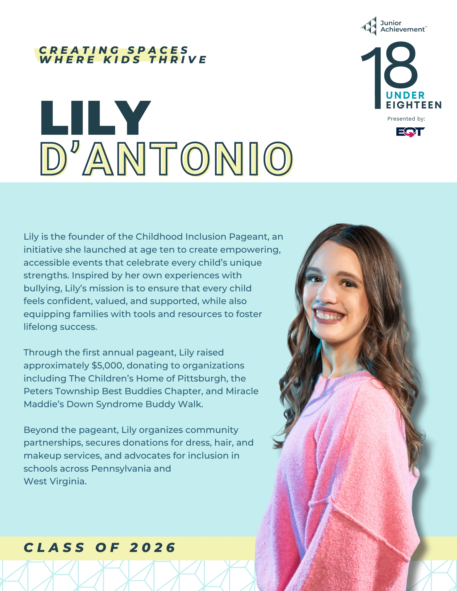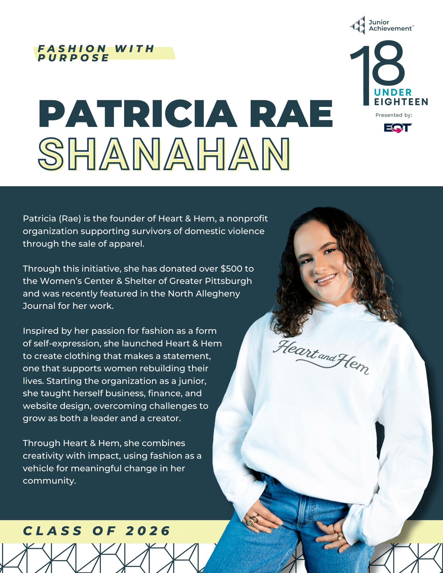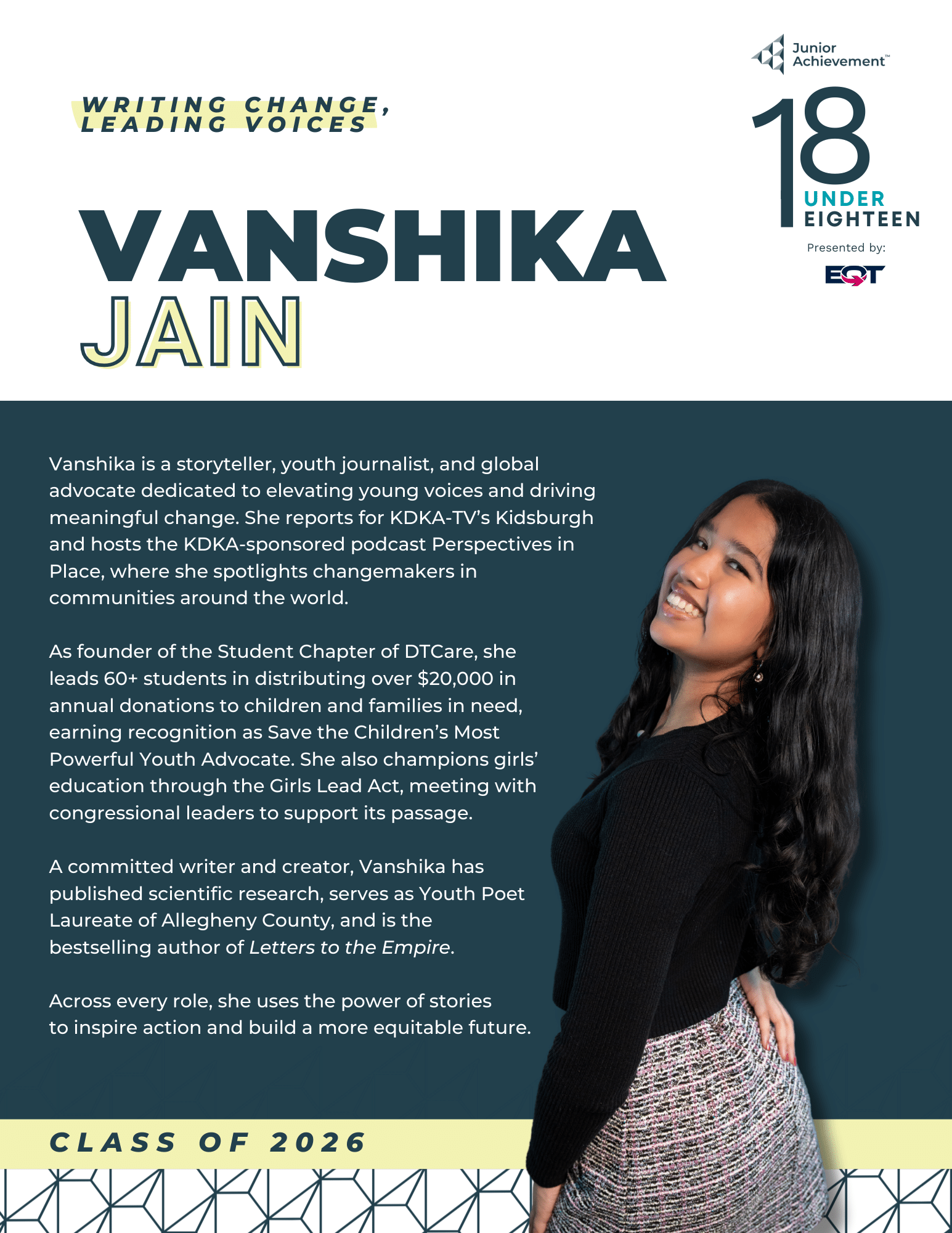 For half a decade, JA’s 18 Under Eighteen, Presented by the EQT Foundation, has celebrated the boldest young leaders across our region – students making real impact in their schools, neighborhoods, and communities.